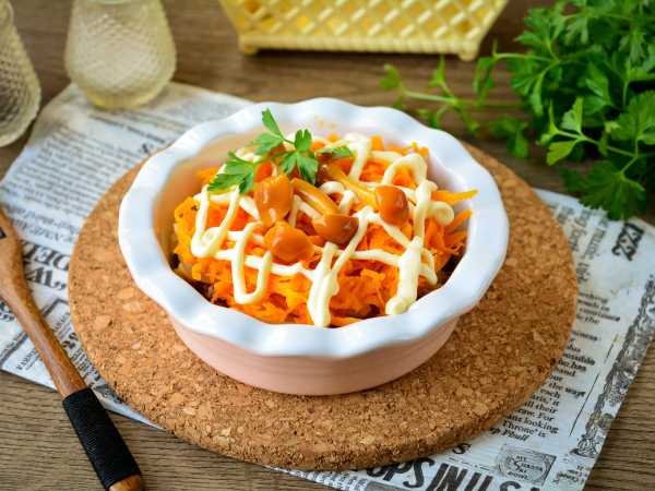 Слой моркови чуть подсолите и смажьте одной-двумя чайными ложками майонеза.