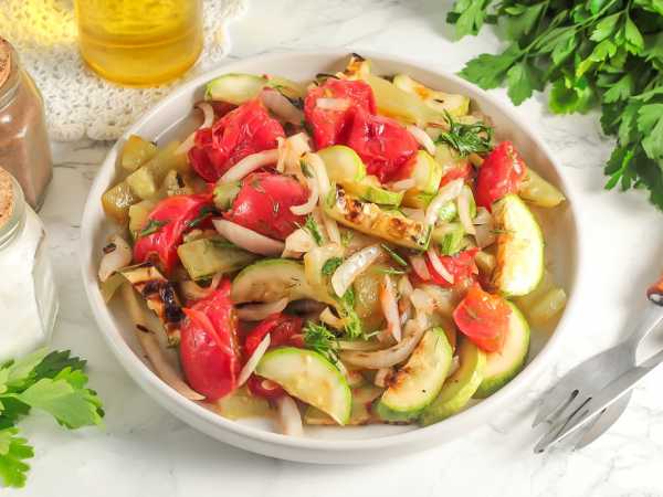 Нежные и сочные жареные кабачки в соевом соусе готовы.