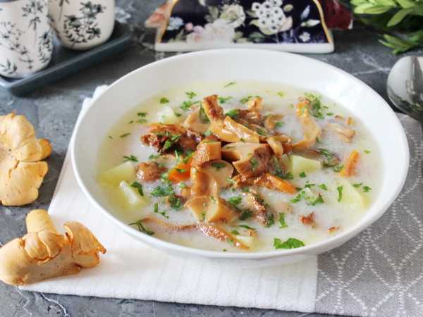 Соберите ингредиенты для приготовления грибного супа из лисичек со сливками.