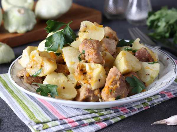 Можно приготовить на гарнир картофельное пюре по желанию. Но мне нравится подавать без гарнира, так как сами коренья и лук служат отличным гарниром к мясу.