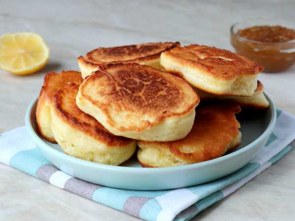 Жарьте оладьи с голубикой с двух сторон по 2-2,5 минуты, чтобы получилась аппетитная золотистая корочка. Когда перевернете оладьи, прикройте сковороду крышкой, так оладьи станут еще пышнее. Таким образом жарьте все оладьи.