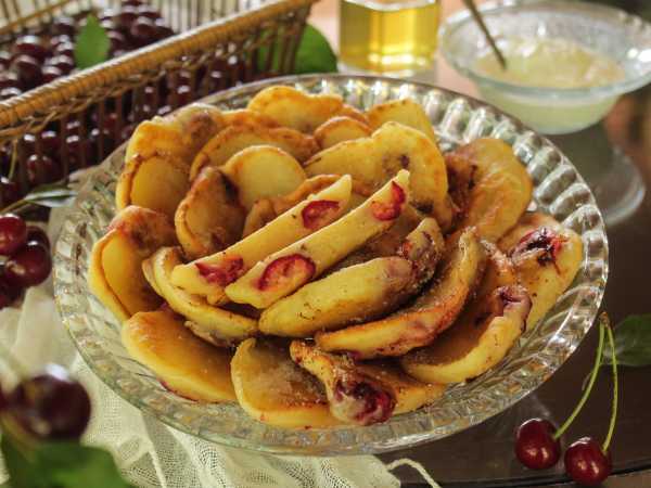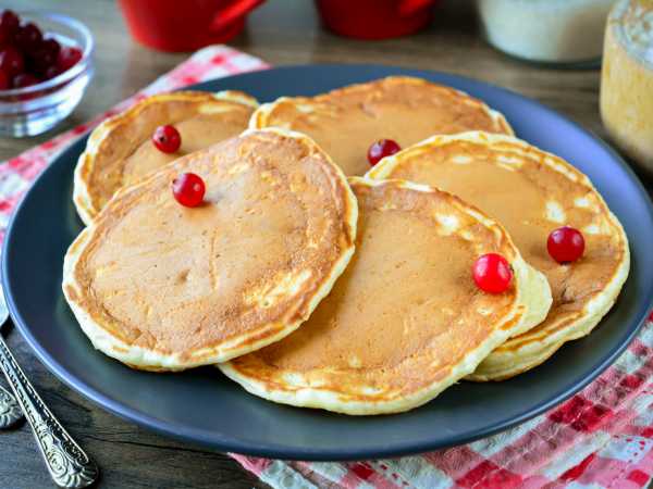 Румяные, пышные, ароматные и вкусные оладьи подавайте к столу. Голубика в начинке понравится и взрослым, и детям.