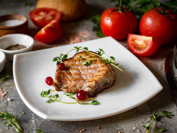 Запекайте стейки из свинины с помидором в духовке, разогретой до 185-190 градусов, 35-40 минут. После достаньте из духовки и посыпьте тертым сыром.