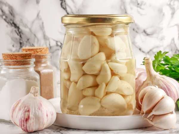 Чеснок квасится головками. Снимите верхнюю шелуху, оставляя лишь нижнюю, которая держит зубчики. Срежьте корни и промойте головки в воде.