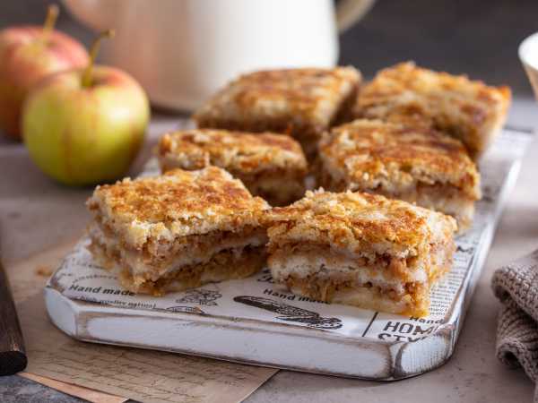 Для немецкого яблочного пирога нам понадобятся следующие ингредиенты: масло сливочное, сахар, яйца, разрыхлитель мука и яблоки.