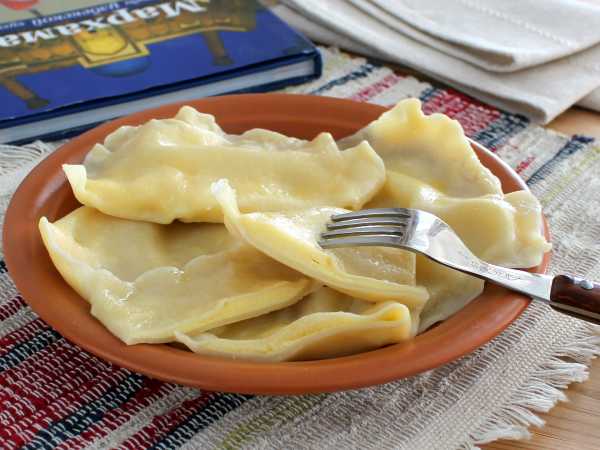Или сделайте привычные пельмени, но количество начинки в них может быть немного поменьше, т.е. зависит от размеров круглых заготовок их теста.