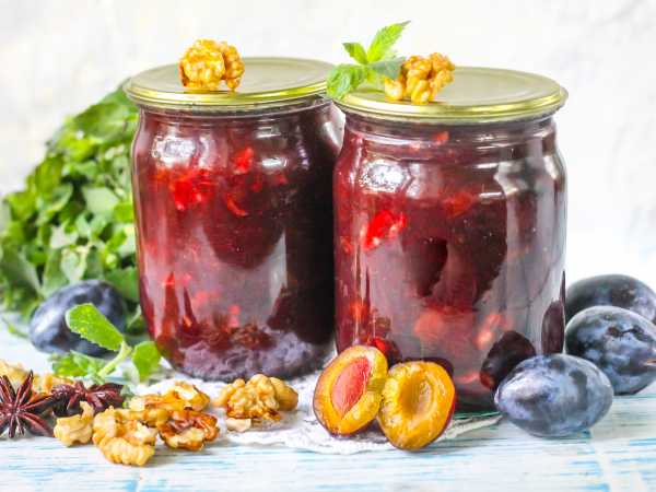 Соберите ингредиенты для приготовления варенья из слив и персиков на зиму.