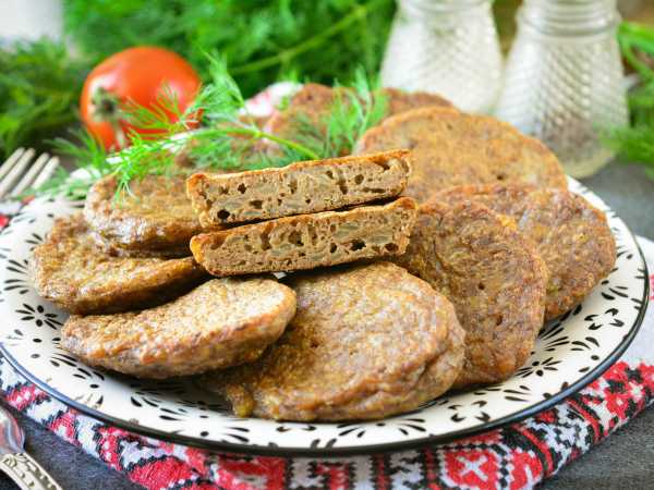 Обжаривайте оладьи из говяжьей печени с чесноком с двух сторон по 3-4 минуты. Когда перевернете их на другую сторону, можете сковороду прикрыть крышкой, чтобы оладьи стали пышнее и хорошенько пропарились. Таким образом обжаривайте все оладьи, пока не закончится фарш.