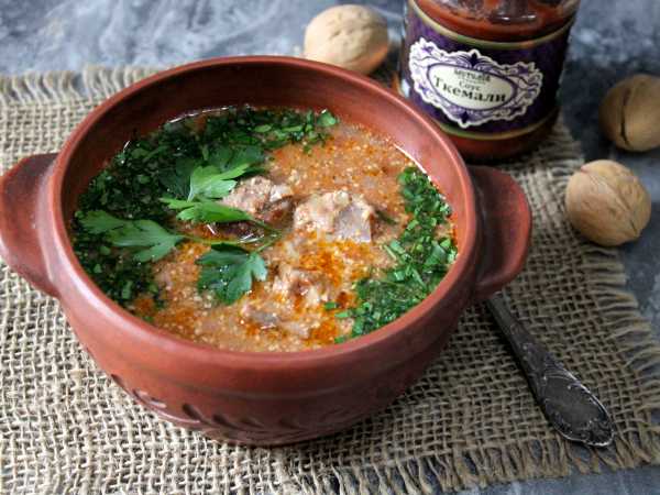 Соберите ингредиенты для приготовления супа харчо с перловкой.
