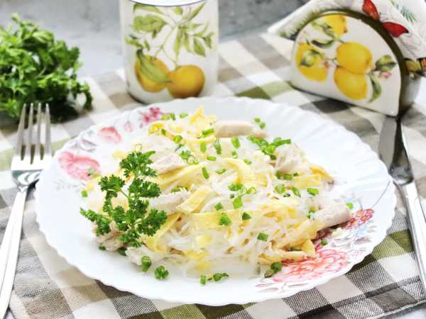 Фунчоза с курицей в кисло-сладком соусе готова.