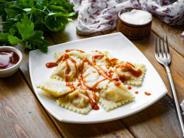 Готовые равиоли с моцареллой подаем к столу горячими с любимым соусом. Приятного аппетита!