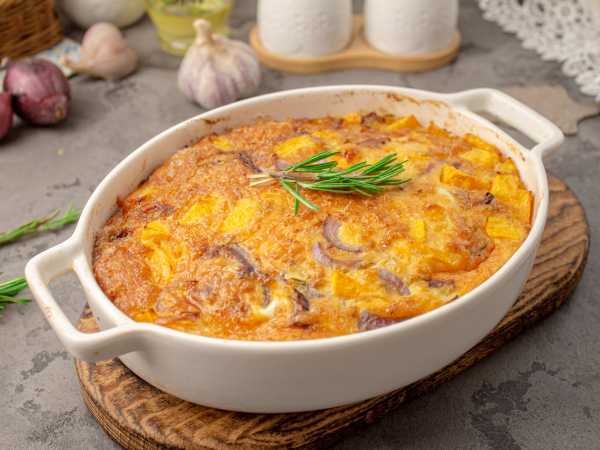 Выпекайте пышный омлет на воде в духовке при температуре 160-180°С около 20 минут.