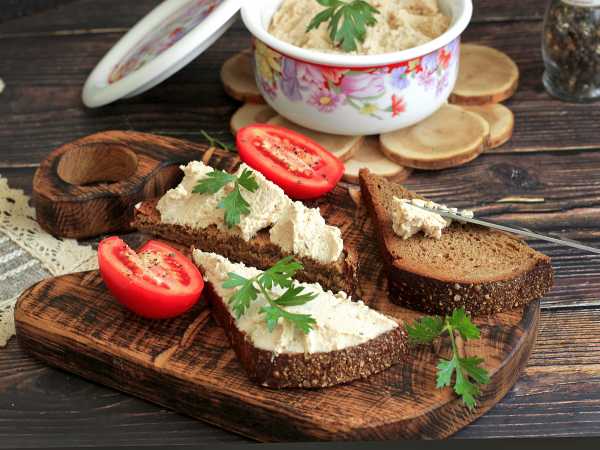 Паштет из куриной печени и сердечек готов к подаче. Можно поджарить кусочки белого хлеба или багета, намазать паштетом и подавать к столу со свежими овощами.