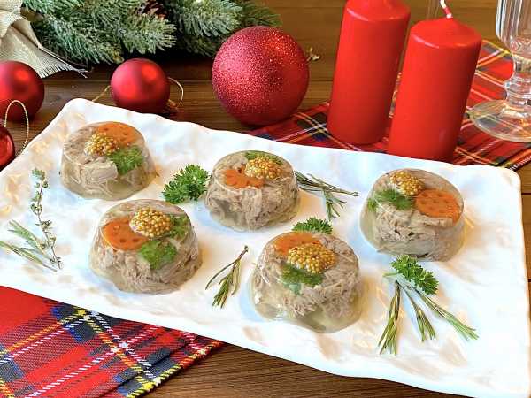Нарежьте заливное на кусочки и приятного аппетита!
