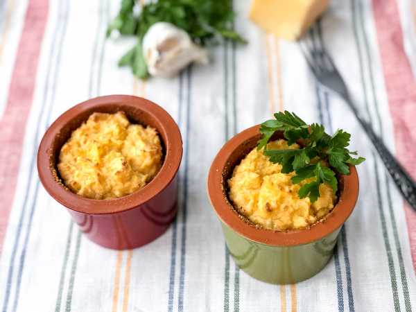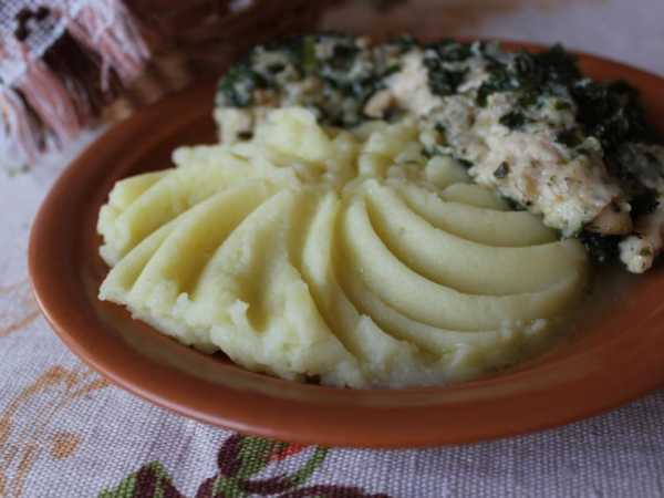 После каждой порции теплого молока с маслом картошку разминайте и перемешивайте, пока она не приобретет нежную и пышную консистенцию. Если вы не будете давать картофельный крем детям, то поперчите по вкусу, а также добавьте любые приправы.