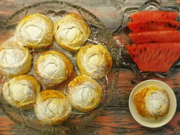 Для крема смешиваем сметану с подсластителем. Остужаем булочки и смазываем кремом.