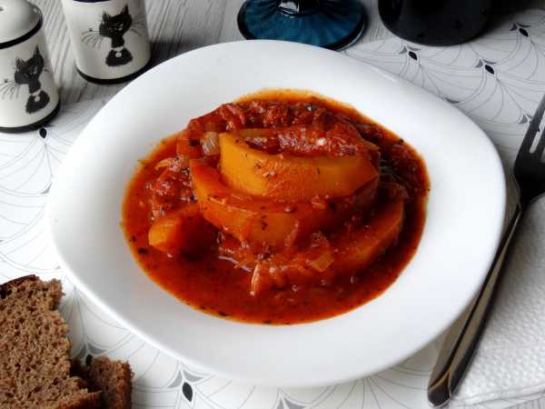 Подайте тыкву в соевом соусе к столу горячей. Блюдо можно дополнить сметаной или майонезом, чесночным соусом.