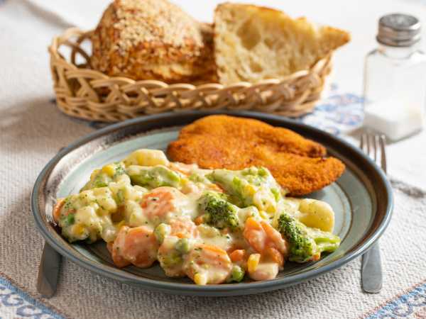 Скорее всего, через 20 минут у вас как раз и вода закипит, и картошка нарежется. Картошку варим до мягкости (ориентируемся на 25 минут). Варим без соли. За время варки картошки мы успеем подготовить всё остальное.