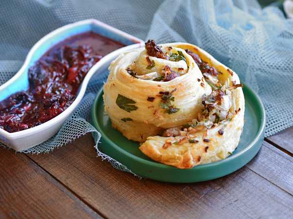 Запекайте закуску 20-25 минут - до золотистого цвета и готовности. Палочки из слоеного теста с беконом готовы к подаче.