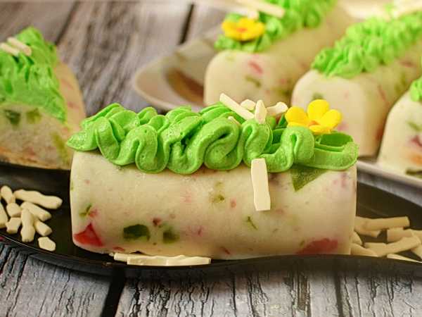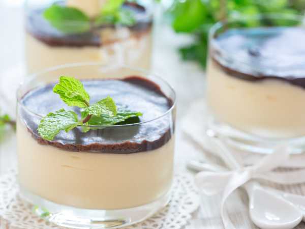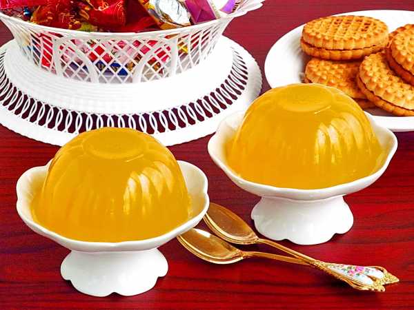 Желатин залить водой, в двух разных емкостях, для каждой части десерта.