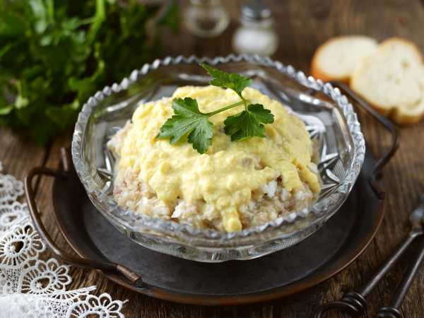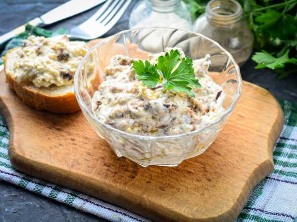 Выложите все нарезки в чашу блендера или измельчителя. Добавьте майонез любой жирности и щепотку соли.