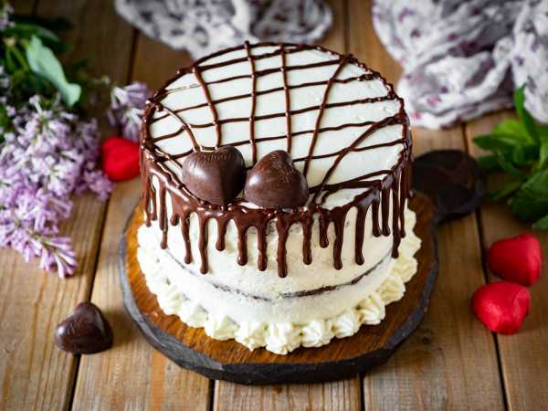 Теперь накройте верхним коржом, перевернув его срезом внутрь. Остатками пропитки смажьте бока и обильно полейте верх торта.