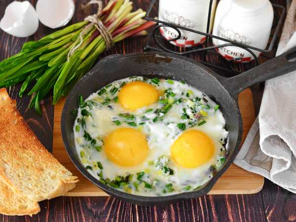 Соберите ингредиенты для приготовления яичницы с гренками.
