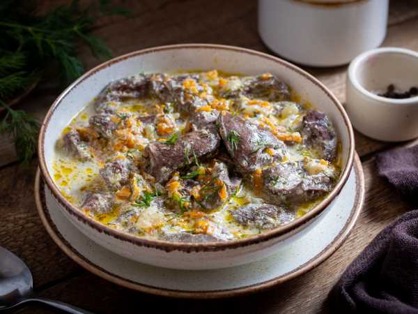 Сердца промойте в воде, срежьте сосуды и разрежьте на четыре части каждое сердце. Снова промойте и выложите в кастрюлю или казан. Залейте горячей водой и доведите до кипения, а затем воду слейте. Снова залейте горячую воду и проварите сердечки примерно 40 минут на умеренном нагреве.