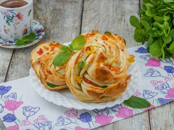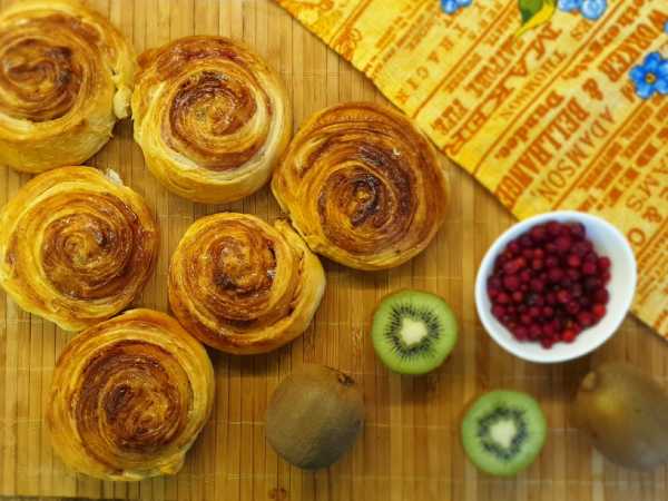 Булочки с брусникой из дрожжевого теста готовы.