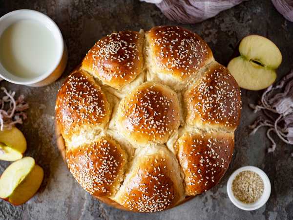Выложите булочки на противень с пекарской бумагой. Дайте постоять при комнатной температуре 25-30 минут, смажьте яйцом и поставьте в духовку, разогретую до 175-180 градусов.