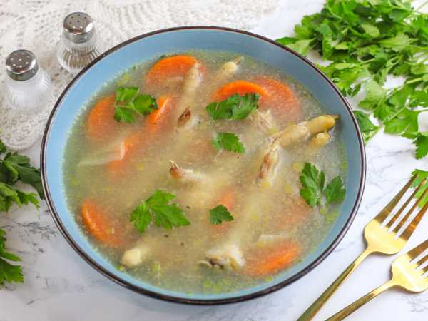 Продукты для приготовления супа из куриных лапок - перед вами!