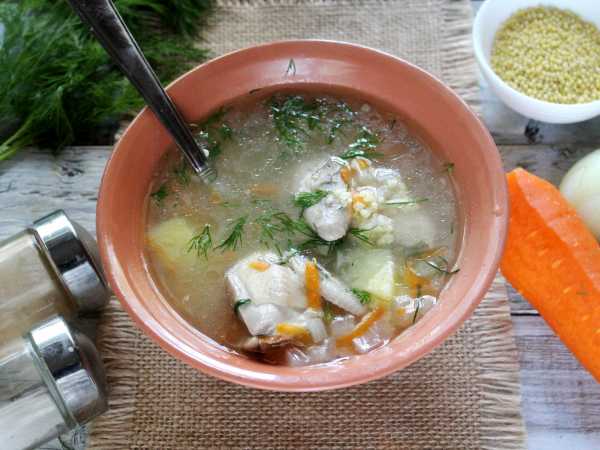 Пшено тщательно промойте на сите горячей водой и засыпьте в бульон. Прибавьте огонь под кастрюлей.
