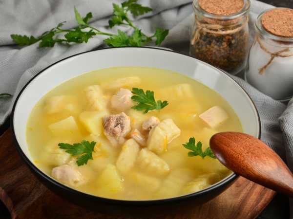 В конце варки добавьте куриное мясо, которое вы сняли с косточек.