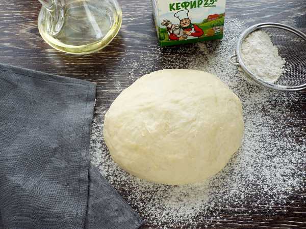 Муки может уйти чуть больше или чуть меньше указанного количества. Старайтесь при замесе теста не добавлять сразу всю муку, лучше добавить в процессе. Готовое тесто положите в миску, накройте крышкой и оставьте для подъема при комнатной температуре на 4 часа. За это время два-три раза обминайте тесто на столе, подпылив его мукой.