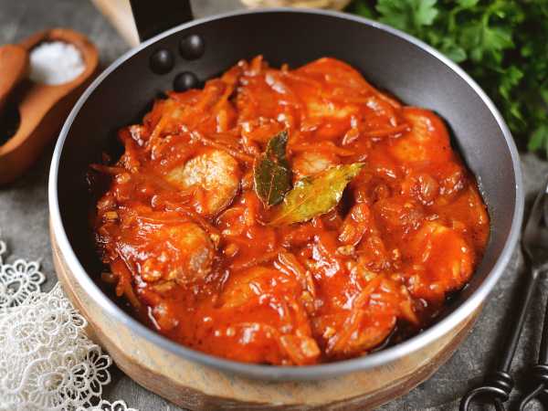 Соберите ингредиенты для приготовления свиной шеи в сметане на сковороде.