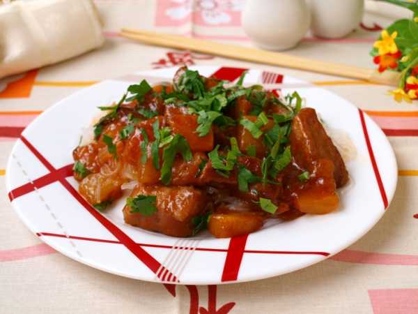 Свинина с подливой готова.