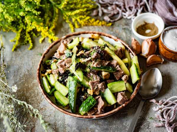Готовый салат с говядиной и сельдереем можно сразу же подавать к столу, разложив его по порционным тарелкам. Приятного аппетита!