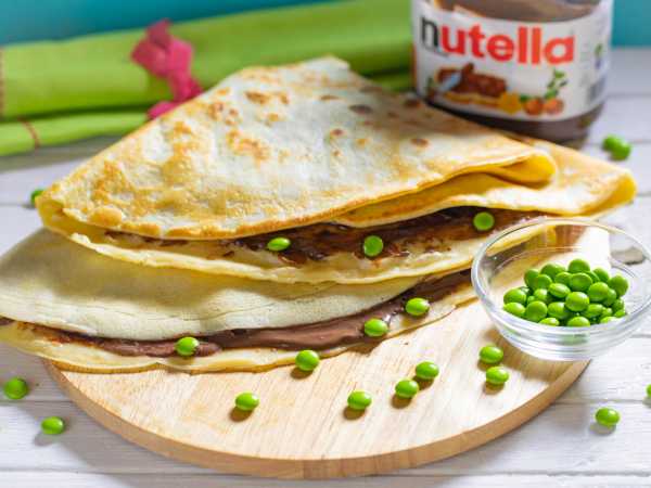 После чего сложите блинчик конвертиком в три раза или скатайте в рулетик.