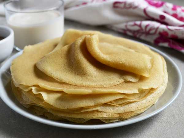 Готовые блинчики складывайте на тарелку и желательно накрывайте крышкой, так у них не будут высыхать края.
