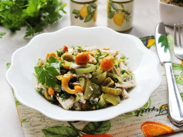 Салат «Обжорка» со свининой готов.