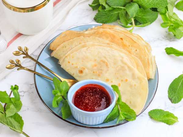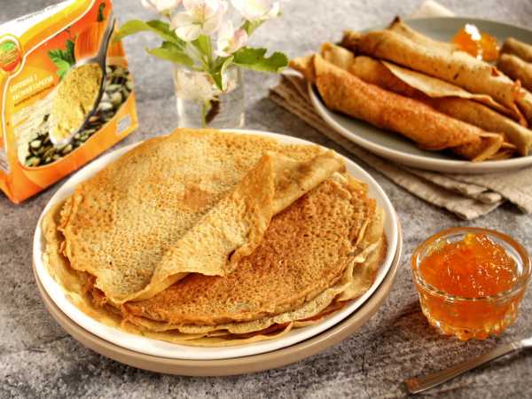 Готовые блины из зеленой гречки на кокосовом молоке подавайте с медом, сиропом или сметаной.