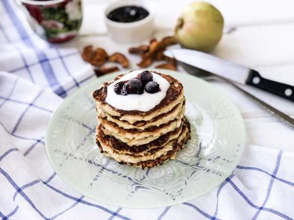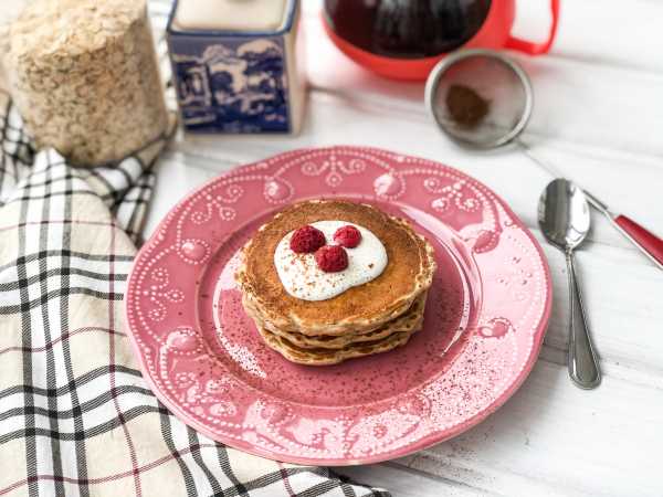 Когда верх блина перестанет быть жидким, а нижняя сторона румяной, аккуратно переверните блин. Также продолжайте готовить блин под крышкой на минимальном огне до румяной нижней стороны. Таким же способом приготовьте второй овсяноблин на сыворотке из оставшегося теста.
