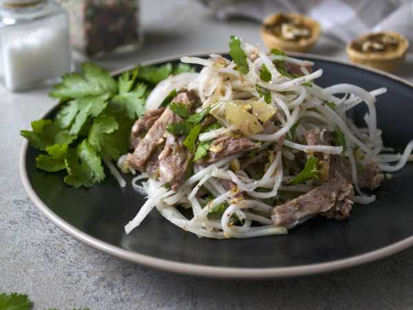 Подавать салат из редиски и редьки лучше хорошо охлажденным. Но если не терпится подать его сразу после приготовления, то выкладываем в порционные салатники и подаем.