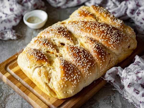 Начинку покройте второй частью теста. Посыпьте кунжутом.