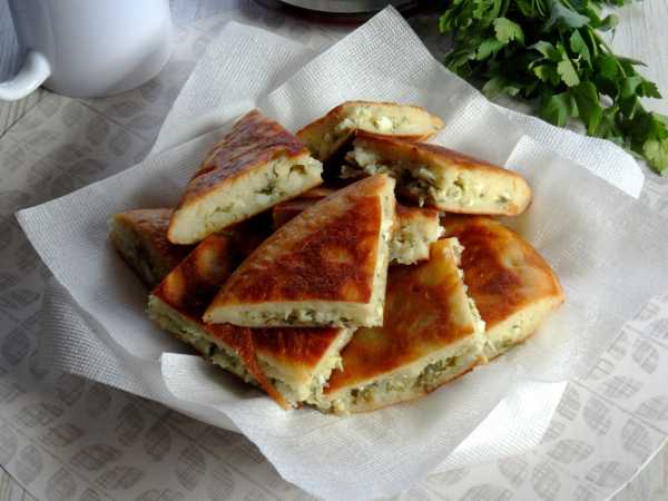 Жарьте грибы до испарения жидкости. После добавьте нарезанный зеленый лук. Начинку посолите и перемешайте.