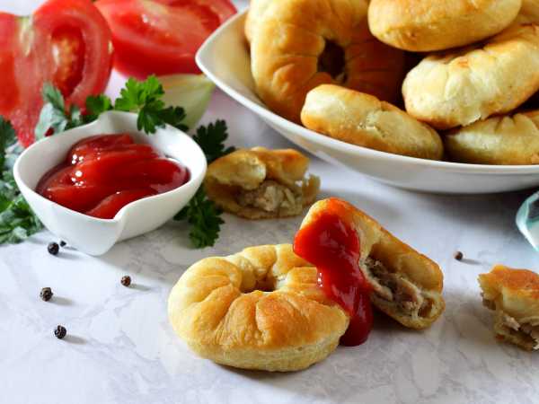 Румяные ленивые беляши на молоке с фаршем готовы, выложите их на тарелку и подайте к столу горячими. Не забудьте про сметану, овощной салат, квашеные овощи.