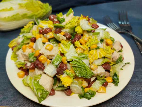 Быстрый и свежий салат из пекинской капусты с ананасом и кукурузой готов за считанные минуты.