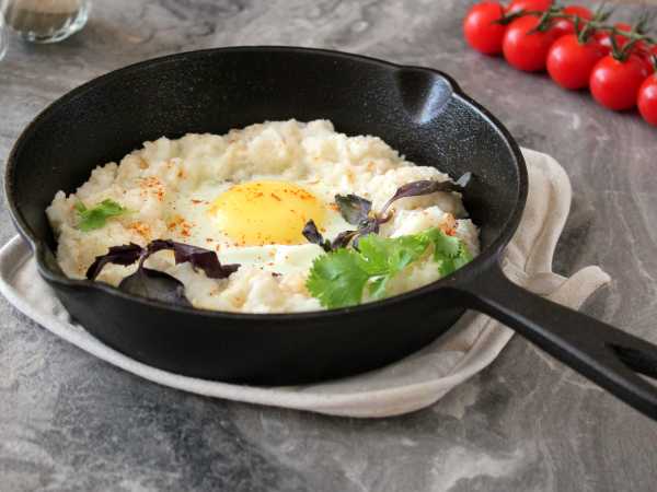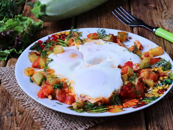 Готовую яичницу с грибами и помидорами сразу подавайте к столу. Блюдо сытное и очень вкусное!