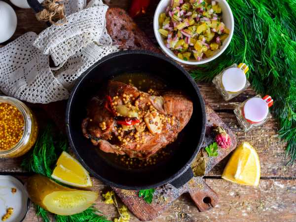 Запекаем мясо по-французски из свиного окорока в предварительно разогретой духовке примерно 15-20 минут при температуре 180 градусов. Ориентируйтесь на специфику своего духового шкафа.