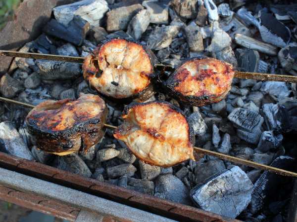 Чтобы приготовить стейки горбуши на мангале, возьмите свежую рыбу.